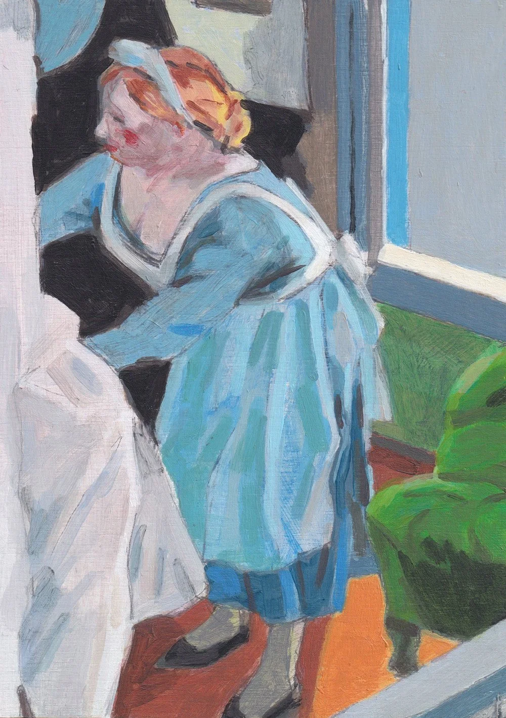 During a lull or doldrum in the studio, I decided to do close studies of four vignettes cropped out of different interiors painted by Edward Hopper. This is the first, and I tried to avoid being too fussy with my translation.